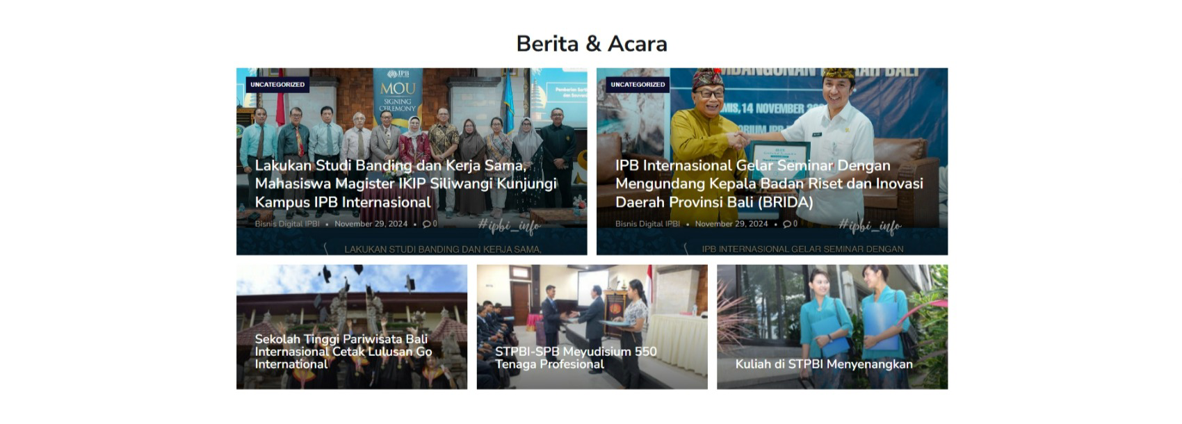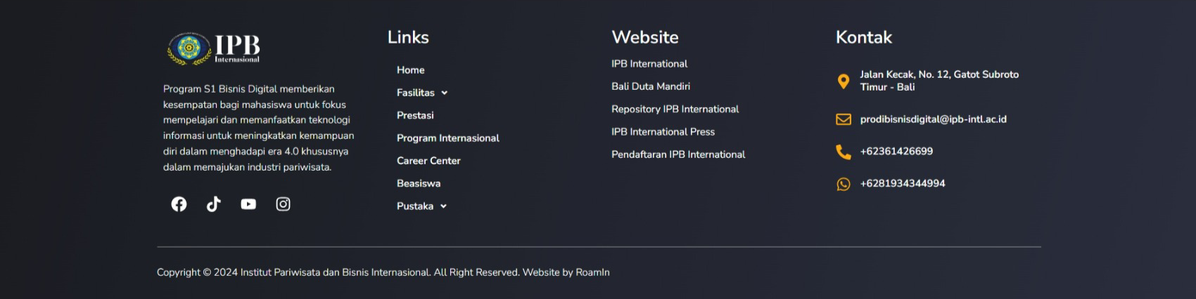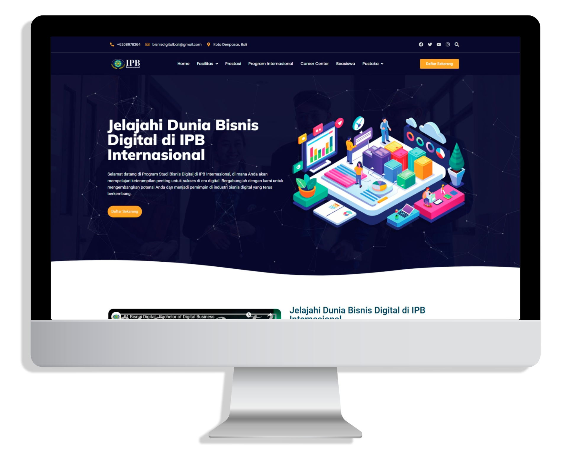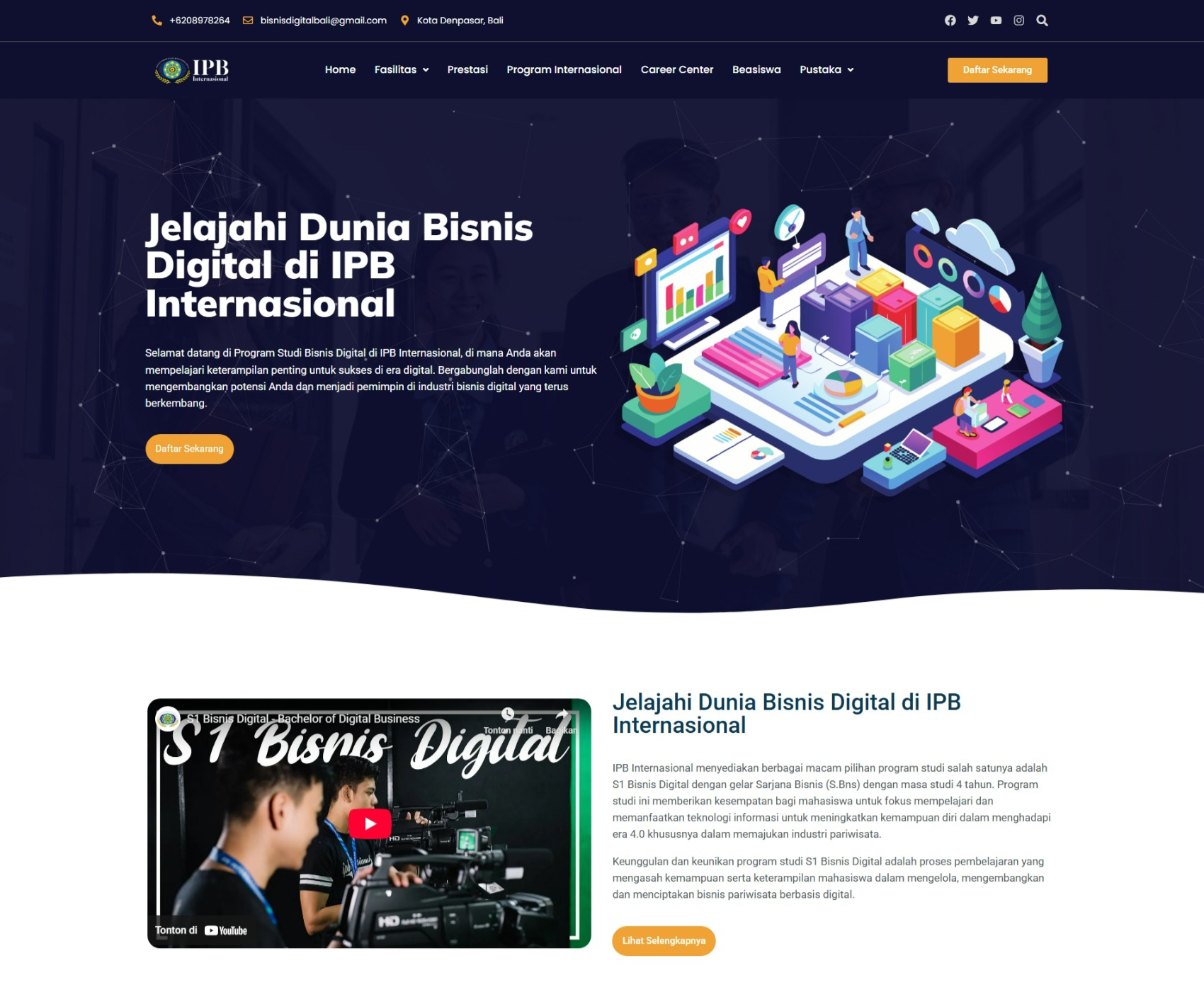 The website is now actively used as an official online gateway for the Digital Business Study Program at IPBI, helping increase program visibility, student inquiries, and online engagement. It also functions as a mini-portal to highlight student works, events, and digital initiatives under the program — supporting IPBI’s broader mission in advancing digital-based education in Bali.
